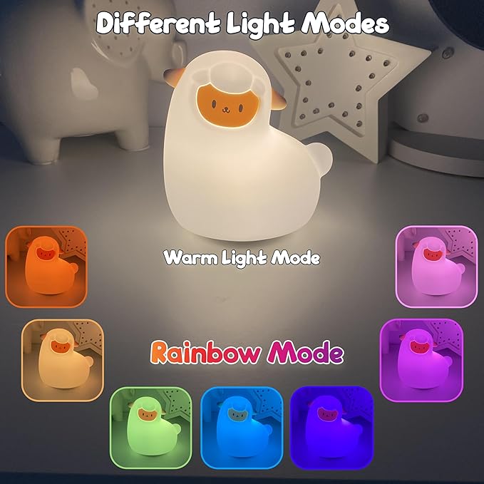 Alpaca Night Light – Silicone Rechargeable Touch-Controlled Dimmable RGB Lamp with Adjustable Brightness & Multiple Color Modes – Ideal for Kids' Nursery, Bedroom, and Bedtime Décor