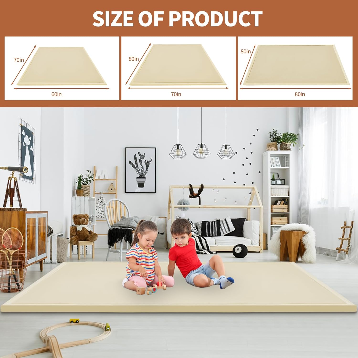 Baby Play Mat for Floor - 1.4" Thick Memory Foam Rug, 80"x70" Playpen Tummy Time Mat, Soft Velvet Nursery Rug, Large Padded Crawling Mat, Cushioned Pads for Playroom Toddlers, Infants, Yoga, Tatami