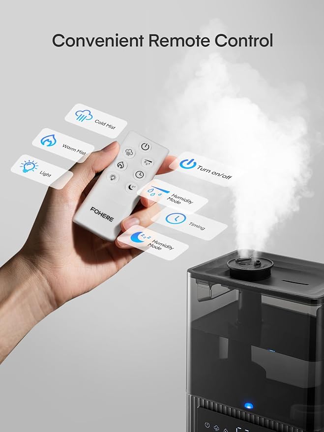 - Convenient Remote Control: Effortlessly manage the humidifier functions with the included remote control or intuitive touch panel. Ideal for homes with babies, pets, and plants, for rooms and offices alike.