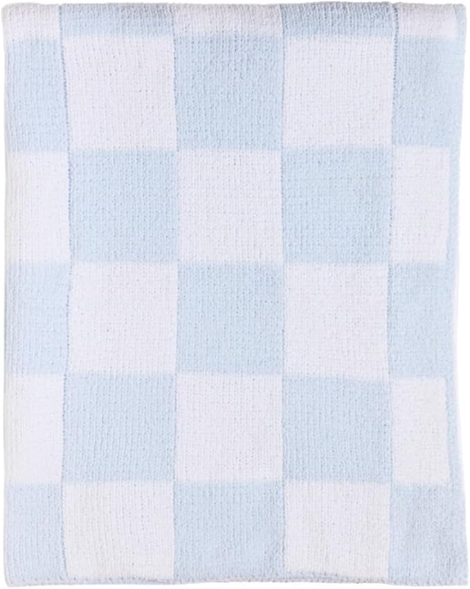 Living Textiles Chenille Knitted Blanket - Blue Check