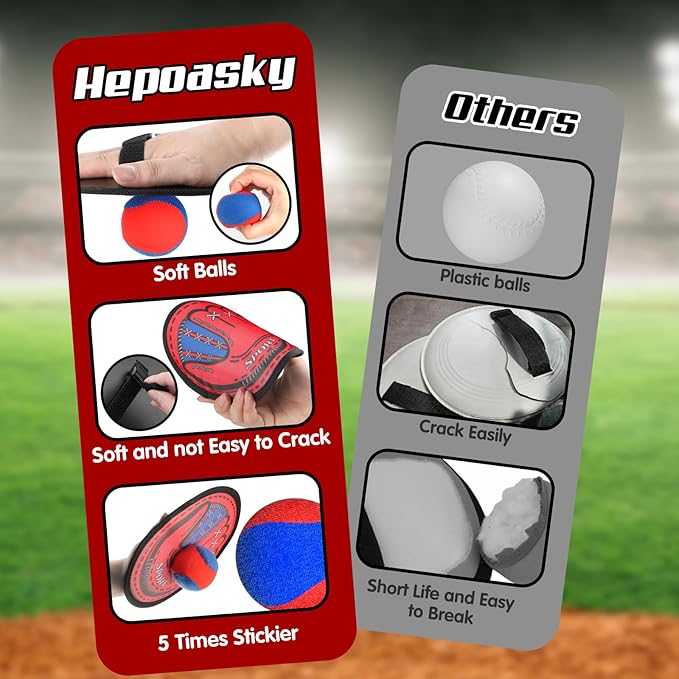 - Adjustable for Most Hand Sizes: Our toss and catch game features upgraded, fully adjustable hand straps. They are comfortable and soft, easy to put on, and designed to fit comfortably on most hands, whether for a child or an adult. As a complete baseball-style game set, it provides everything needed for a fun and rewarding playtime experience, bringing joy to players of all ages.