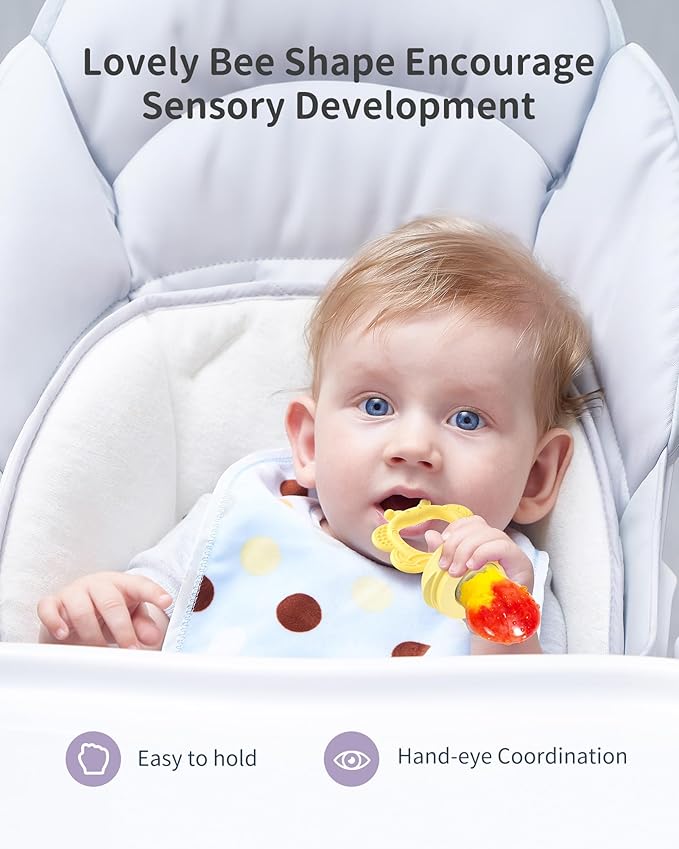 - Support Independent Feeding: Our Feeder is equipped with an easy-to-grasp ring suitable for little hands, fostering self-feeding proficiency and refining hand-eye coordination. Babies delight in sucking on it, aiding in their development of self-feeding abilities, making it a perfect choice for baby-led weaning