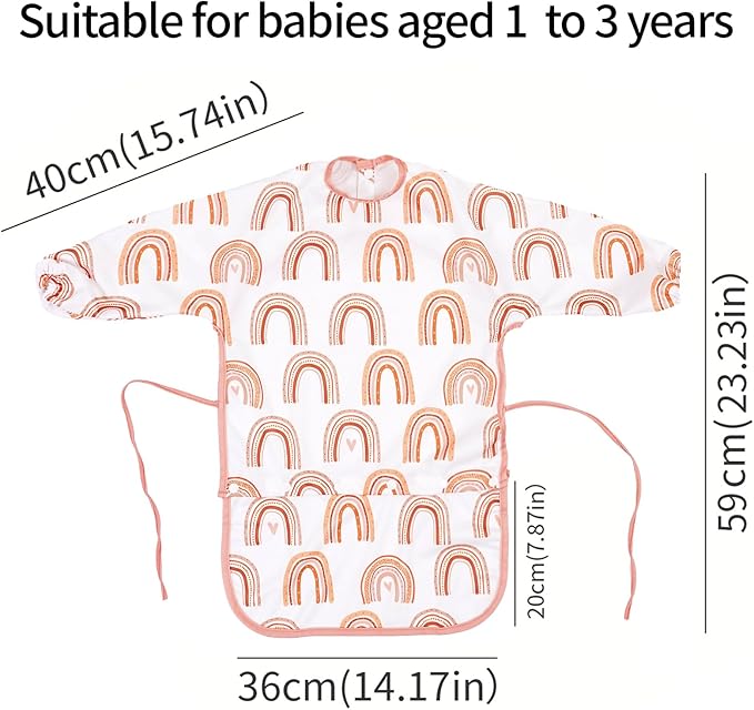 - Ideal for babies and toddlers aged 1-3: This long-sleeved baby bib features an adjustable neck strap for an easy, secure, and comfortable fit