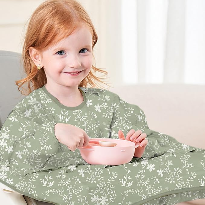 • Ideal for babies and toddlers aged 1-3: This long-sleeved baby bib features an adjustable neck strap for an easy, secure, and comfortable fit