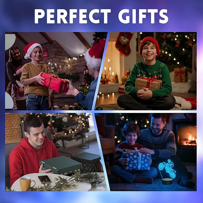 - ใ๐ฏ๐ ๐ฉ๐ถ๐๐๐ฎ๐น ๐๐ณ๐ณ๐ฒ๐ฐ๐ใExperience the stunning 3D effect of dirt bike acrylic panels with LED base.The dirt bike night light is flat but has a 3d looking image on it. Especially in the dark, the vision thrill will be strong! This unique illusion effect not only elevates your room's decor but is also a unique gift for dirtbike lovers