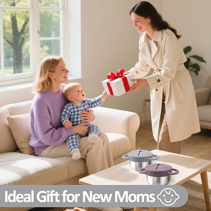 - A Thoughtful Baby Shower Gift - These toddler snack cups make a perfect baby shower gift or first birthday surprise. With fun colors and premium design, these spill-proof stainless steel snack containers are a practical baby gift parents will truly appreciate