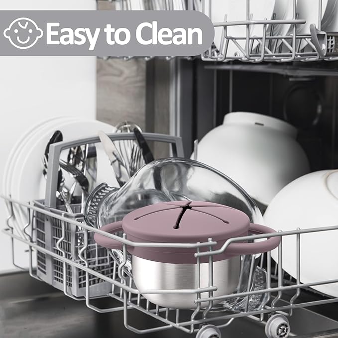 - Easy to Clean&Built to Last - Snack containers crafted from premium 304 stainless steel and food-grade silicone,each cup holds about 9 oz , these snack catchers are freezer-safe. Toddler snack containers are stain-proof, and dishwasher safe. Built to handle drops, throws, and every snack-happy moment life brings