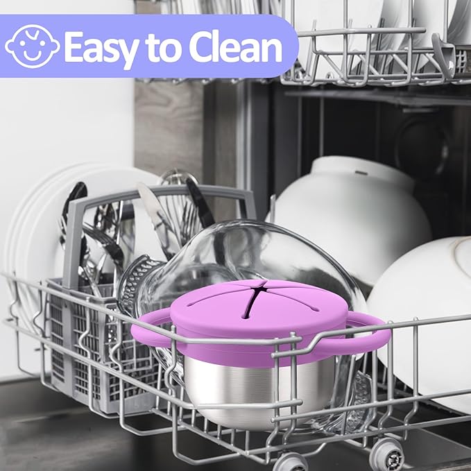 - Easy to Clean&Built to Last - Snack containers crafted from premium 304 stainless steel and food-grade silicone,each cup holds about 9 oz , these snack catchers are freezer-safe. Toddler snack containers are stain-proof, and dishwasher safe. Built to handle drops, throws, and every snack-happy moment life brings