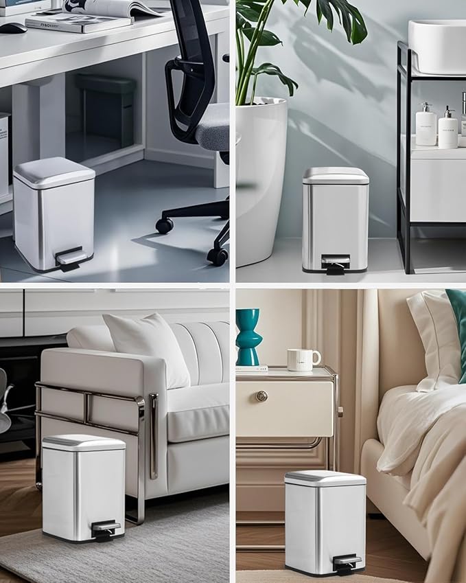 - Ideal 6L / 1.6 Gallon Compact Capacity: With its 1.6 gallon (6L) capacity, this square garbage can is the perfect size for low-traffic areas like bedrooms, offices, or as a dedicated kitchen compost bin.