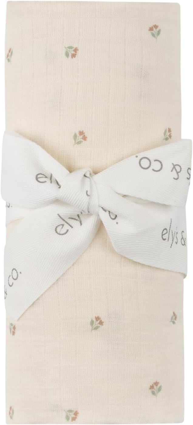 Ely's & Co. Cotton Muslin Swaddle Blanket with Scallop Trim, 1-Pack for Baby Girl— 100% Cotton Muslin Extra-Large Swaddle Blankets (47” x 47”) Ivory Tulip