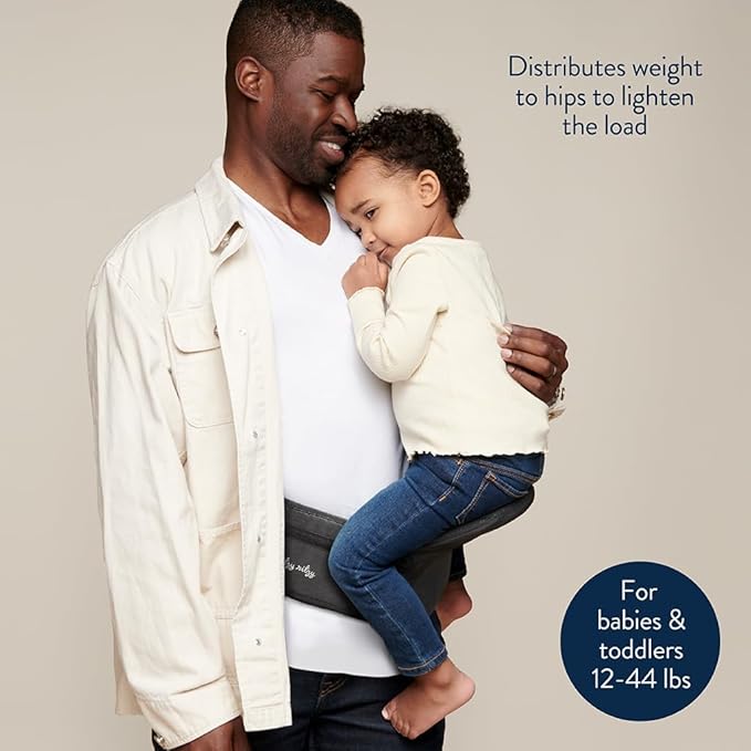 Itzy Ritzy Hip Seat Baby Carrier - 3 Ways to Hold & Support Babies and Toddlers Between 12-44 Pounds; Fits Up to 62" Waist (Black)
