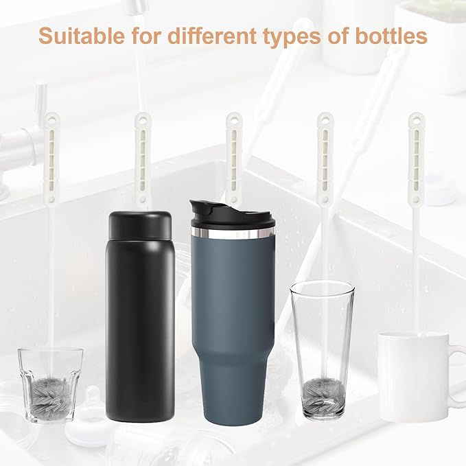 - Efficient Cleaning – Medium-soft bristles scrub away stubborn residue without scratching. Great for narrow neck bottles that are hard to reach with regular brushes.
