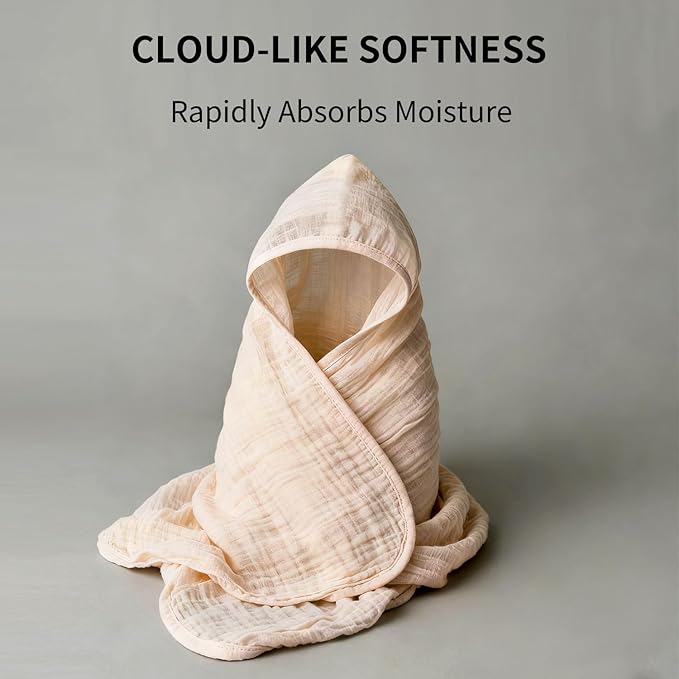 - Ultra-Soft 100% Organic Cotton: Crafted from premium organic cotton gauze, this hooded baby towel is incredibly gentle on your little one's delicate skin, providing a plush and cozy wrap after every bath.