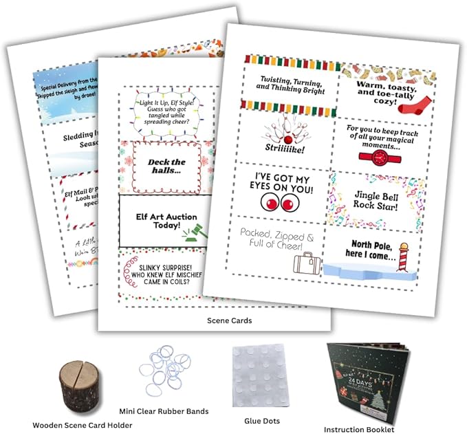 2025 Christmas Activity Elf Kit 24 Days Magical Kit Christmas Traditions Elf Activities 125+ Props and Accessories Fun Toys for Kids Magical Countdown to Christmas Decorations