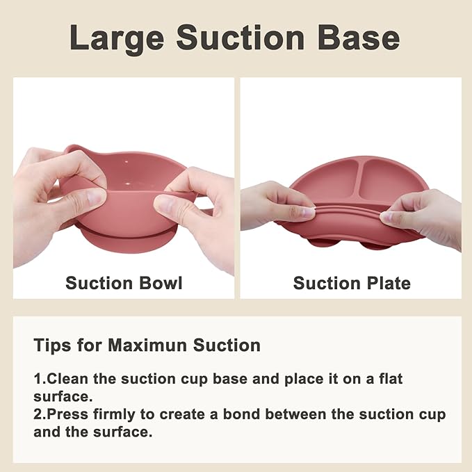 - Safe & Baby-Friendly Materials: Considering your baby's health, every item in our baby feeding set is made of 100% food-grade silicone and natural beech wood, BPA-free, non-toxic, lead-free, phthalate-free, PVC-free, so our baby plates and bowls set is absolutely safe and healthy for your baby to eat and chew.