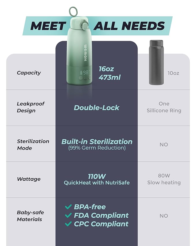 - Fast & Gentle Heating in Just 2 Minutes: Our portable milk warmer heats 2oz of milk quickly without compromising nutrients. No more waiting around while your baby cries—ideal for those urgent feeding moments