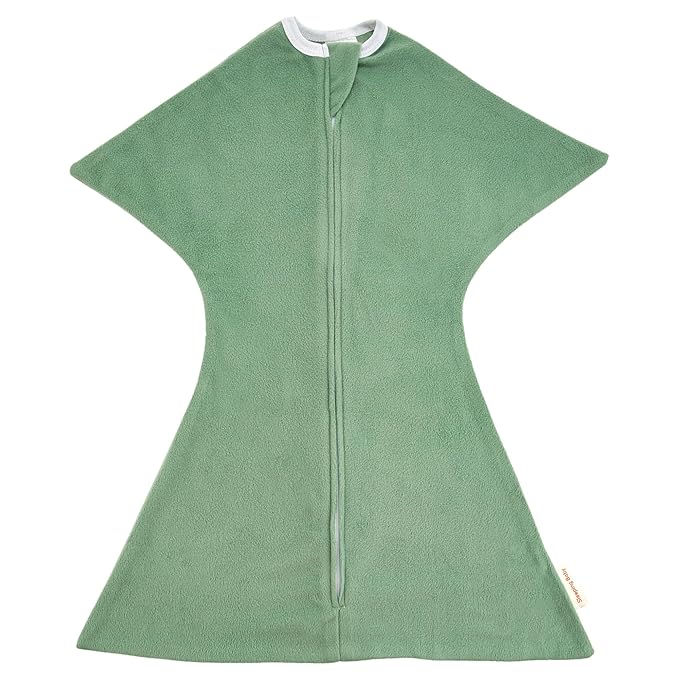 SleepingBaby Fleece Zipadee-Zip Transition Swaddle and Snuggle Strap Bundle - Roomy Baby Swaddle Blanket with Zipper Convenience and Wearable Blanket Accessory, Fleece Basil, Small (4-8 Month)