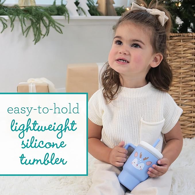 Infantino My 1st Tumbler, Silicone Sippy Cup with Straw & Handle, Spill-Resistant Baby Cup for On-the-Go, BPA-Free Transition Bottle, Reindeer