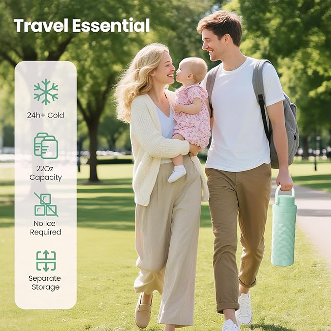 Mosthink 22oz Breast Milk Cooler Bottle, 360°Cooling Keeps Milk 24 Hours Fresh Portable Breastmilk Chiller with 2pcs Baby Storage Bottle for Travel & Outdoor Use, Breastfeeding Essentials