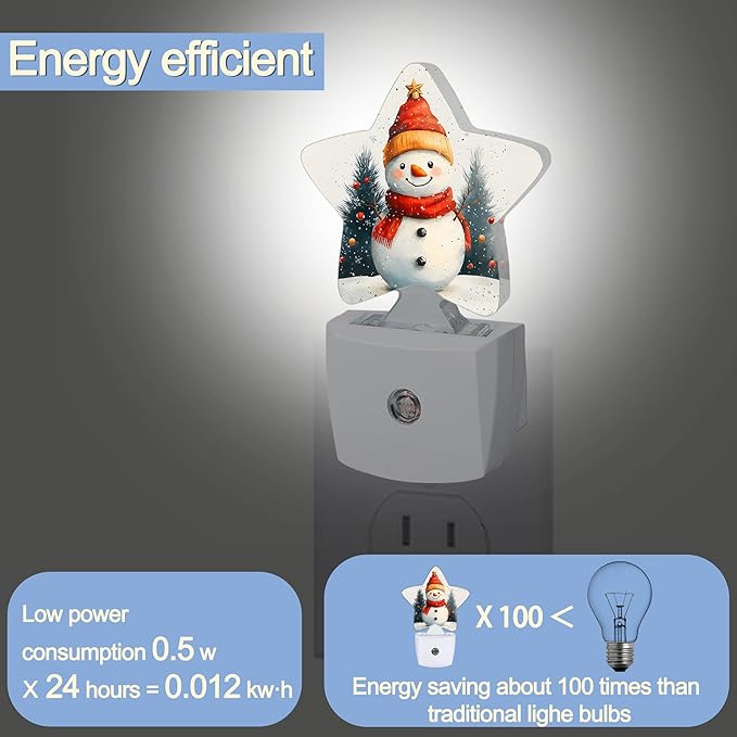 Night Light,Christmas Snowman Plug into Wall with Dusk to Dawn Light Sensors,Winter Trees Warm Star Nightlights for Bedroom,Bathroom,Hallway,Kitchen Home Decor Desk Lamp