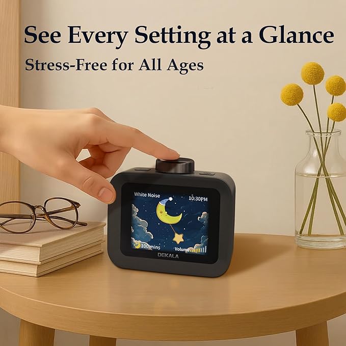- 【Create Healthy Sleep ecosystem】 Build a screen-free sleep sanctuary with Dekala’s all-in-one ecosystem – no scrolling, just tap to play 30+ lab-tuned sounds (white/brown/pink noise) synced with dynamic sleep animations (campfire, stars) , adding 5-min to ∞ Timer, Customize playback duration or let it run all night.