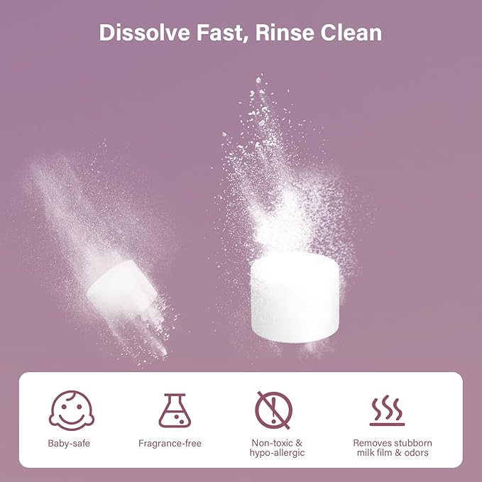 - Deep Cleaning Power. Powered by natural bio-enzymes, our water bottle cleaner tablets quickly break down stubborn milk residue, fats, and odors. Deliver a deep clean without residue, keeping baby bottles, breast pump parts, and other feeding accessories spotless and fresh.