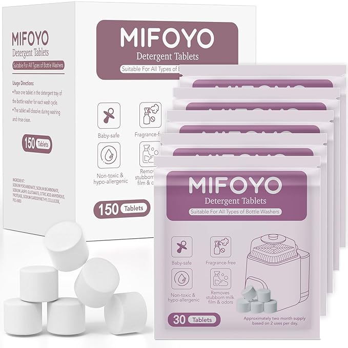 150PCS Baby Bottle Washer Detergent Tablets, Detergent Soap Tablets Compatible with All Types of Bottle Washers, Bottle Cleaning Tablets, Baby Bottle Washer Tablets, 30 Count per Bag
