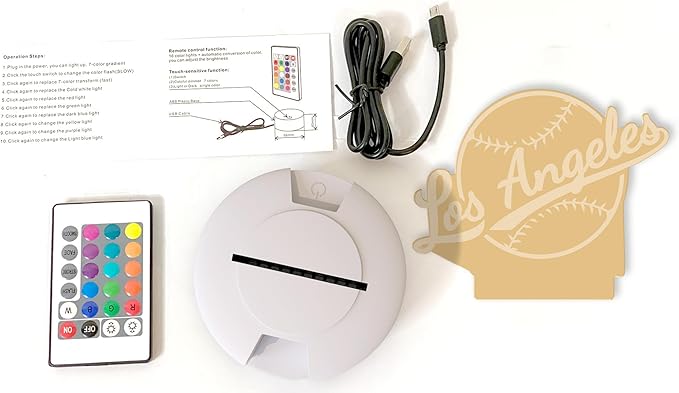 CLORURBANLIVE 3D Baseball Los Angeles Night Light 3D Illusion Lamp with Remote Control 16 Color Options Sports Decor Lighting for Fans - Multicoloured OneSize