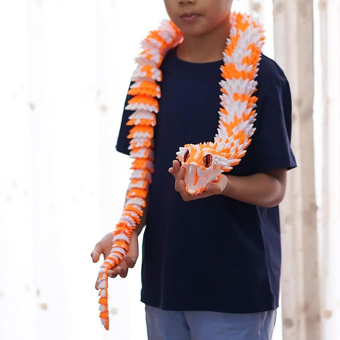 47.5inch Super Large 3D Printed Snake Models,Movable Teeth,Flexible Joint Animal lacertid Figurines, Stress Relief, Fidget restlessness, ADHD Toys, Surprise Fantasy Gifts (WO/47.5inch)