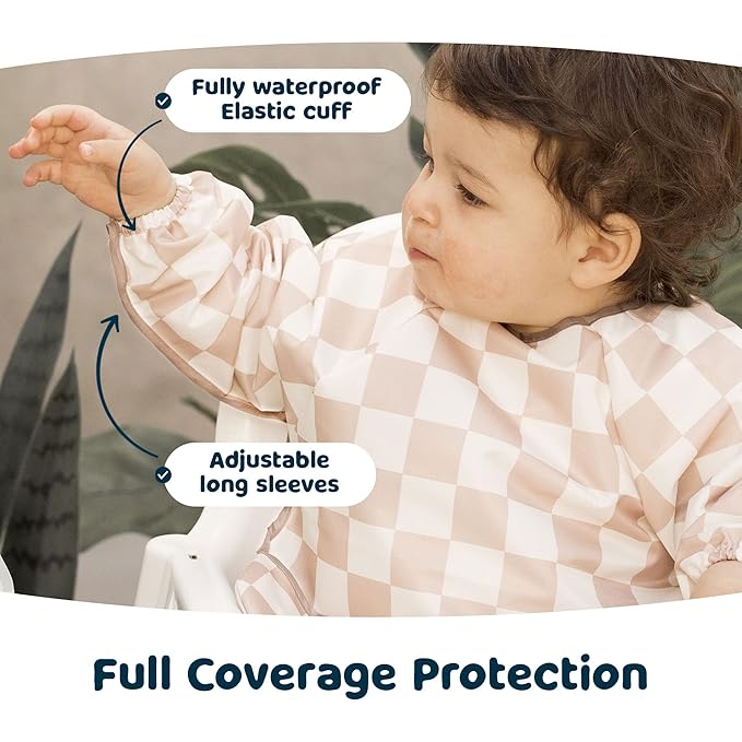 - Mess-Proof Mealtime: Our long sleeve bibs make every meal easy and worry-free for parents. Soft, waterproof fabric and gentle elastic cuffs provide full coverage to keep little ones clean and comfortable.