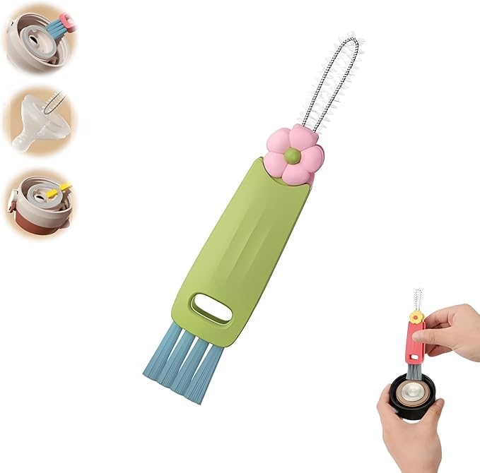 3 in 1 Cup Lid Cleaning Brush, 2025 Upgraded Multifunctional Insulation Bottle Cleaning Tools, Portable Crevice Cleaning Brush Set for Baby Bottle Gap Tight Spaces (#1 Green)