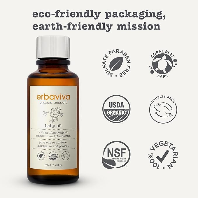 - Infused with essential oils - our nourishing oil for babies is also instilled with the sweet citrus scent of organic mandarin essential oil, for balancing skin and brightening baby’s mood