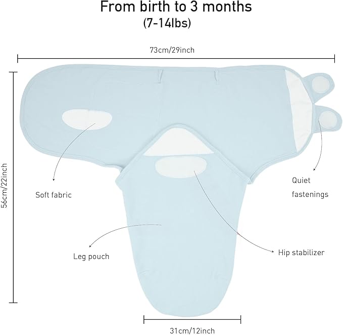 - ADJUSTABLE FIT FOR YOUR BABY: The adjustable baby swaddle sleep sacks comes with soft fabric wings with secure hook and loop attachments, so you can easily adjust and achieve the ideal baby fit, helping to prevent the startle reflex and providing your baby with a soothing and comforting swaddling experience that mimics the womb environment.