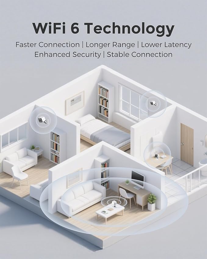- 🛜 Easy WiFi 6 Setup - Install your surveillance system in minutes with our quick-mount magnetic base design and WiFi 6 connectivity for superior range and stability, perfect for both indoor and outdoor monitoring.
