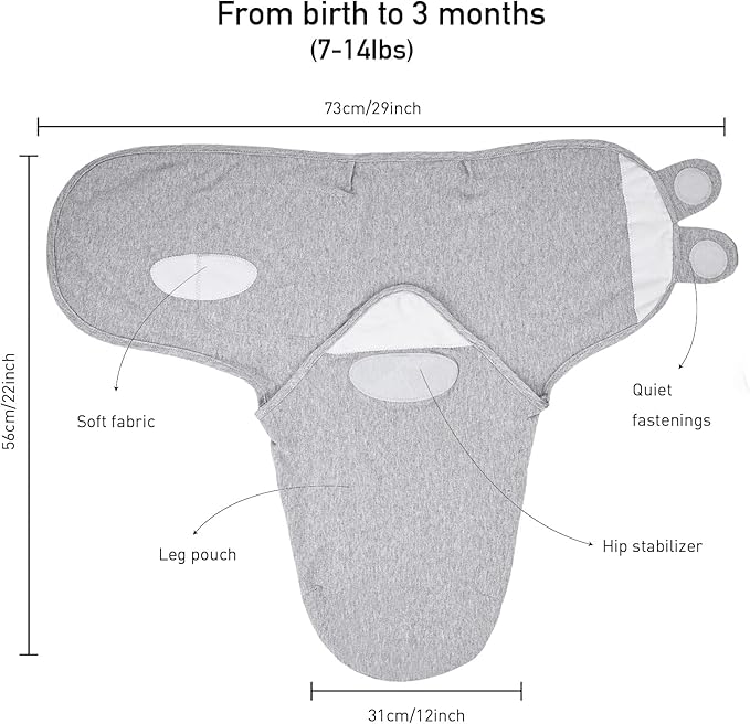 - ADJUSTABLE FIT FOR YOUR BABY: The adjustable baby swaddle sleep sacks comes with soft fabric wings with secure hook and loop attachments, so you can easily adjust and achieve the ideal baby fit, helping to prevent the startle reflex and providing your baby with a soothing and comforting swaddling experience that mimics the womb environment.