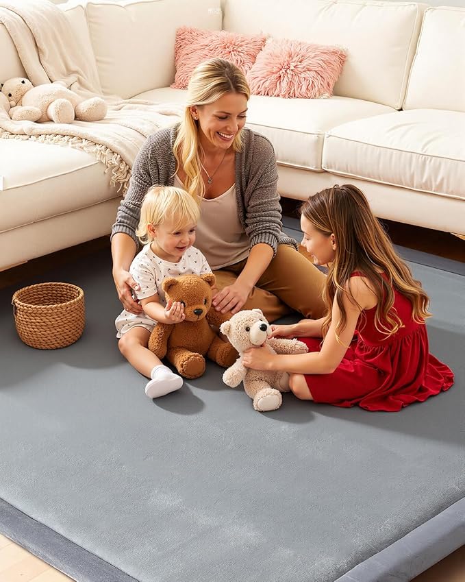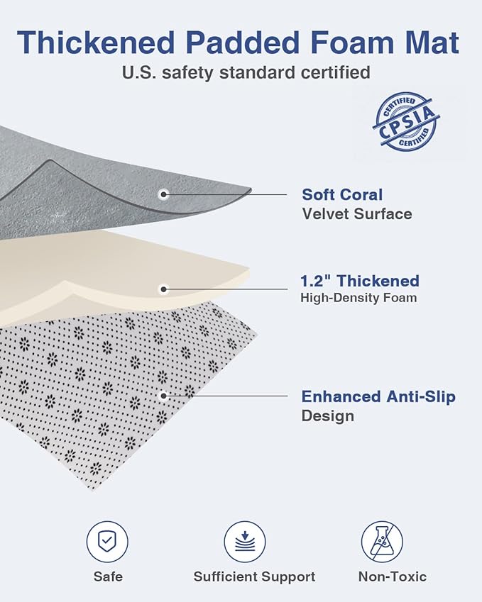 - Extra Soft Plush Surface:Crafted with cozy flannel fabric and premium 1.3" thick high-density foam, this baby play mat offers a supportive, comfortable space for newborn tummy time and babies 6-12 months to crawl, sit, and kids toddler play safely. The ultra-soft surface makes it the perfect baby mat for floor activities.