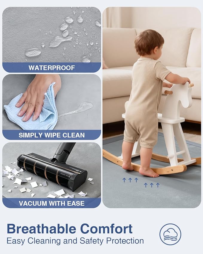 - Versatile for Any Play Space:Ideal as a floor mat for baby in the nursery, living room, or grandparents' house. From infant crawling to toddler play, this baby play mat supports every stage. For cleaning, gently wipe clean the surface or use a vacuum with a soft brush attachment.
