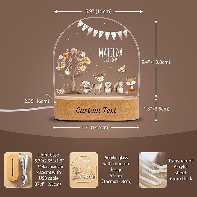 - Made in the USA: This night light's advanced UV printing technology on 6mm thick, high-clarity acrylic ensures a premium feel, vibrant colors, and long-lasting durability. The inclusion of a sturdy beechwood base with a non-slip pad ensures secure placement, making it a heartwarming gift to accompany a child throughout their childhood.