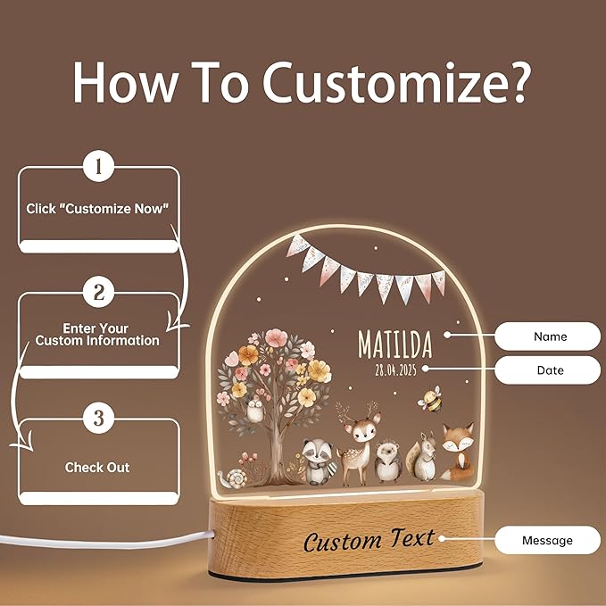 - The Perfect Personalized Baby Gift: Offering a meaningful and unforgettable gifting experience, this custom baby night light is perfect for celebrating a newborn's arrival. It is an ideal present for boys and girls and a personalized keepsake for years to come.