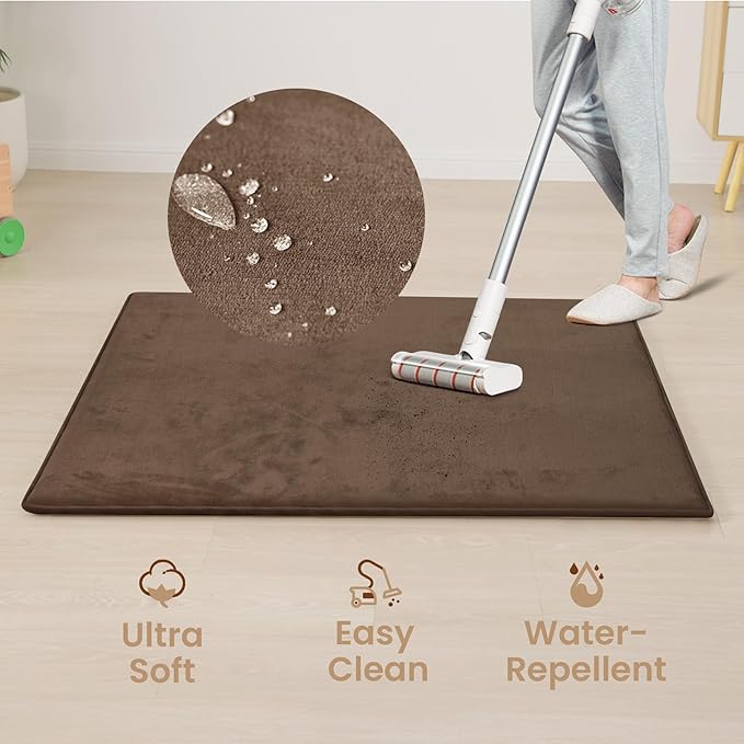 Baby Play Mat for Floor,1.3" Thick Elasti-Foam 50"×50" Playpen Mat for Tummy Time,Water Repellent Soft Coral Velvet for Toddler,Infant,Kids,Non-Slip Backing Safe for Crawling(Dark Brown)