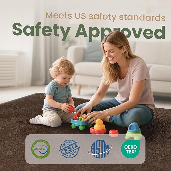 - Certified Safe & Non-Toxic:Rigorously tested for safety, this nursery rug meets OEKO-TEX(on shell), ASTM, and CPSIA standards, ensuring a safe, chemical-free surface for your baby to crawl, play, and explore.