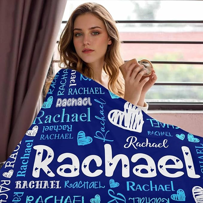 Personalized Baby Name Blanket for Kids Adults Custom Tolder Blankets with Name Love Heart Text Pattern Customized Throw Blanket for Boys Girls Gifts on Birthday Christmas