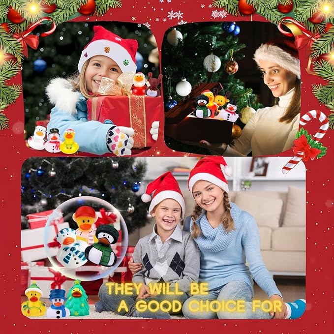 - 52PCS Christmas Rubber Ducks in Bulk - Includes 24 duckies in various colors and characters;They are great for playing with children, especially preschoolers, during birthday parties, school carnivals or parties. Your kids will be entertained for hours