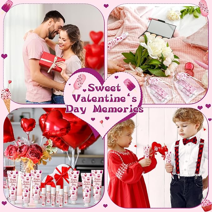 - Elegant Design: each Valentine's Day themed hand cream and lipstick features cherry, stick ice cream, cupcake and other graphic designs to enhance the atmosphere of Valentine's Day gatherings; This charming and lovely gift adds a touch of elegance and unexpected joy to most Valentine's Day outfits; This is an ideal Valentine's Day souvenir
