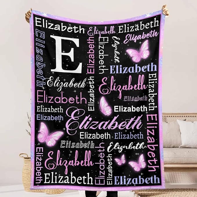 Personalized Baby Blanket for Girls with Name, Custom Name Blanket Butterfly Pattern for Daughter Son, Lightweight Fuzzy Fluffy Baby Blankets for Infant Toddler Newborn Unisex Crib Cot Stroller