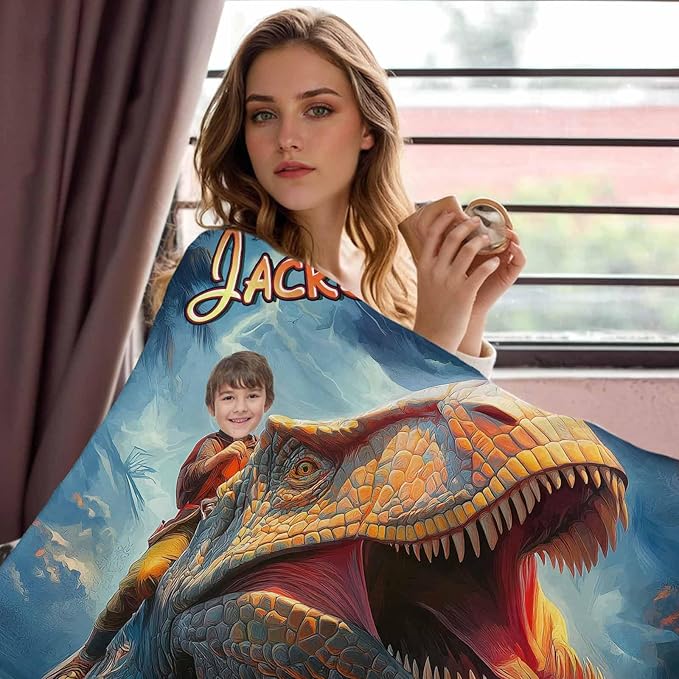 Personalized Baby Blanket with Name Photo for Boys, Soft Plush Receiving Blanket for Son Grandson, Custom Nursery Crib Blanket for Kids, Personalized Baby Gifts for Infant Newborn Shower Birthday