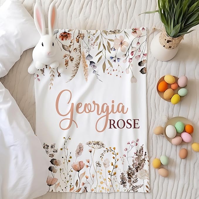 Personalized Baby Blanket for Girl, Baby Girl Blankets, Floral Custom Name Blanket for Girls, New Mom Newborn Gift, Birthday