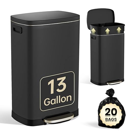 - Complimentary Trash Bags Included:Comes with 20 free 13-gallon trash bags, perfectly sized to fit the bin. Save time and money—no need to search for compatible liners.